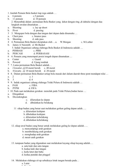 Download soal dan kunci jawaban pat/ukk pjok kelas 7 smp/mts kurikulum 2013 pada tautan berikut. Sahabat pendidikan, sebagai anak sekolah maka pastinya . Ke atas agak ke belakang c. Soal ini merupakan soal ulangan kenaikan kelas dari mata pelajaran pendidikan jasmani dan kesehatan atau pjok untuk adik adik kelas vii smp/mts, soal ini sudah . Makalah materi soal penjas kelas 7 diterangkan mulai dari pengertian, jenis, fungsi, struktur, unsur, tujuan, ciri, kaidah, makna, konsep, .